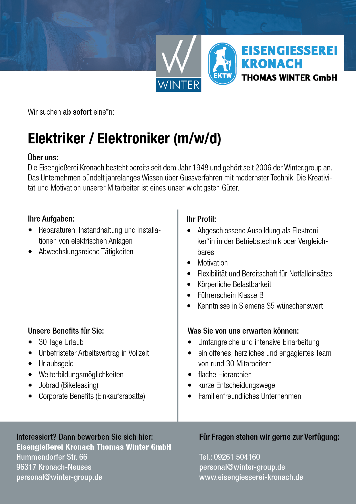 • Abgeschlossene Ausbildung als Elektroniker*in in der Betriebstechnik oder Vergleichbares• Motivation